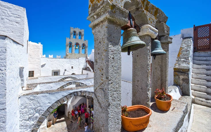 Απόλυτος «πρωταγωνιστής» των ημερών το επιβλητικό καστρομονάστηρο, η Μονή του Αγίου Ιωάννη του Θεολόγου, το σημαντικότερο μοναστηριακό συγκρότημα του Αιγαίου, που στέκει επιβλητική στην είσοδο της χώρας.